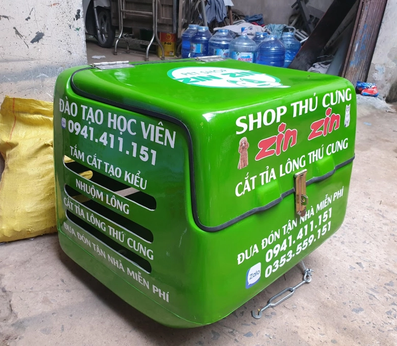 Được gọi là thùng chở chó mèo là bởi thùng có dạng hình hộp vuông gắn sau xe máy chuyên dụng để vận chuyển thú cưng, chó, mèo,... Dành cho các chủ cửa hàng kinh doanh thú cưng, người nuôi chó mèo cảnh, nhằm phục vụ nhu cầu chở giao tận nơi cho khách.